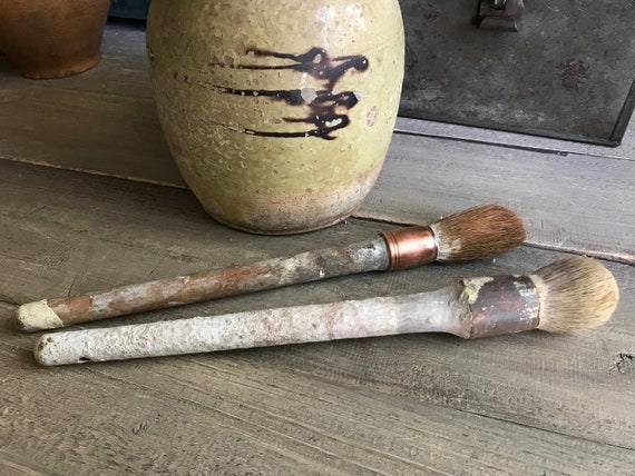 Antique French Paint Brush Copper Band Industrial Decor Round Brush Wood Handle Natural Bristle Large Art Supply Set Of 3 Etsy Uk